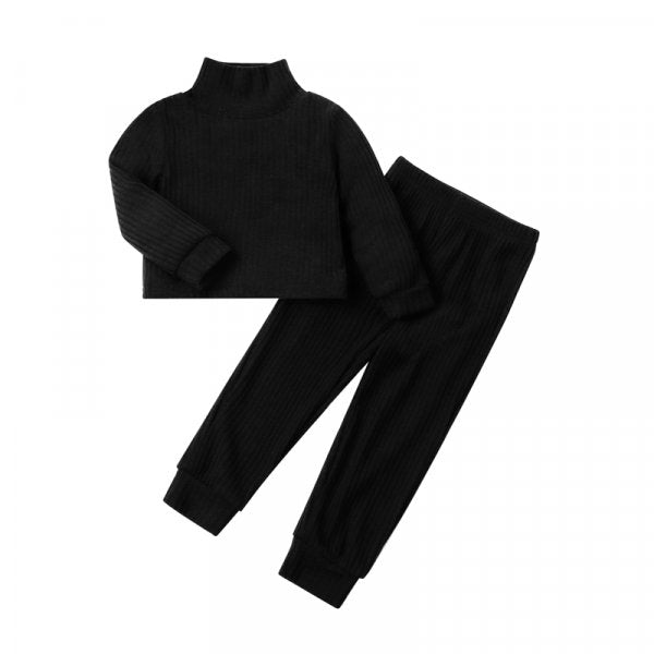 cuello de tortuga negro, traje de salto acanalado, conjunto para niños pequeños, conjunto superior e inferior para niños pequeños, conjunto de leggings para niños pequeños, estética para niños pequeños de dos piezas, conjunto de jersey de dos piezas