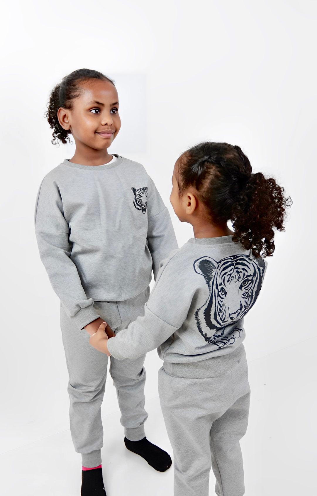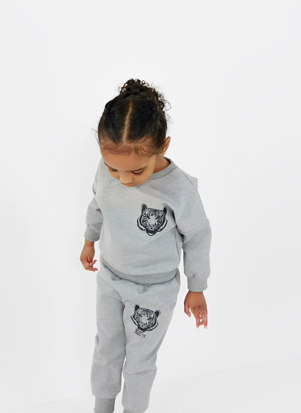 Traje de sudadera gris, mono de tigre para niños pequeños, conjunto superior e inferior, Niños
